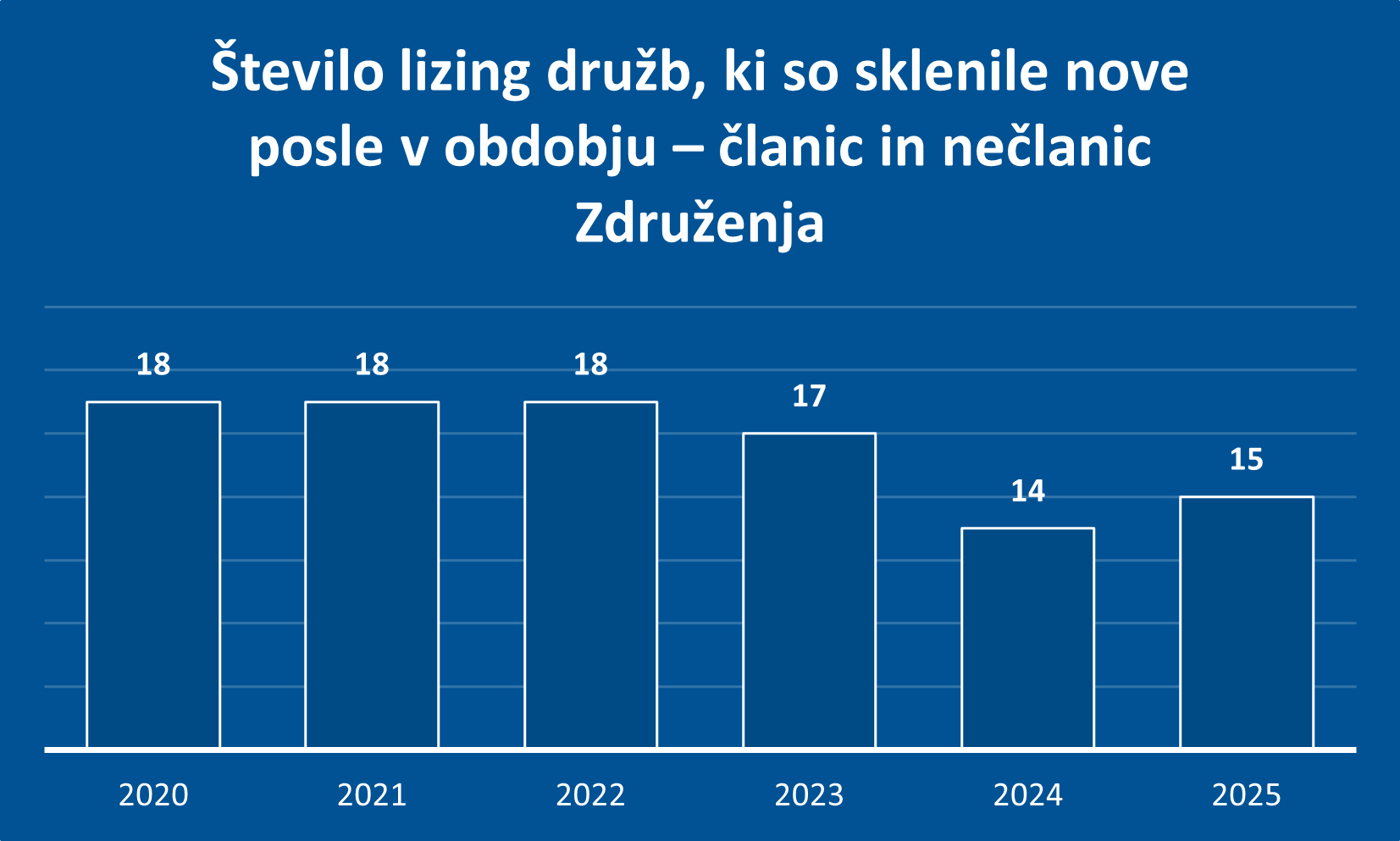 Banka Slovenije je izdala Sklep o poročanju institucij, ki izvajajo dejavnost najema (Ur. l. RS 59/2012), s katerim določa obvezno kvartalno poročanje gospodarskih družb v Republiki Sloveniji, ki izvajajo dejavnost najema, zakupa ali lizinga, ne glede na to ali so te gospodarske družbe članice Združenja bank Slovenije ali ne. Banka Slovenije določi statistični vzorec obveznikov poročanja na podlagi pomembnosti poslovanja in ne pokriva celotnega sektorja leasing dejavnosti. Vzorec obveznikov poročanja se med kvartali lahko spreminja. Lizing družbe poročajo Banki Slovenije podatke v agregirani obliki. Obdelane podatke o lizing dejavnosti objavlja Banka Slovenije v svojih publikacijah, ki so na voljo na spletni strani na naslovu https://www.bsi.si/publikacije in sicer polletno v publikaciji Poročilo o finančni stabilnosti in kvartalno v publikaciji Mesečna informacija o poslovanju bank ter Podatkovnih serijah na naslovu PX-Web – Select table (bsi.si). Banke, ki izvajajo dejavnost najema, zakupa ali lizinga v okviru svoje bančne licence ne poročajo na podlagi navedenega sklepa in njihovi podatki niso vključeni v ta posebna dela publikacij (Poslovanje lizing družb).